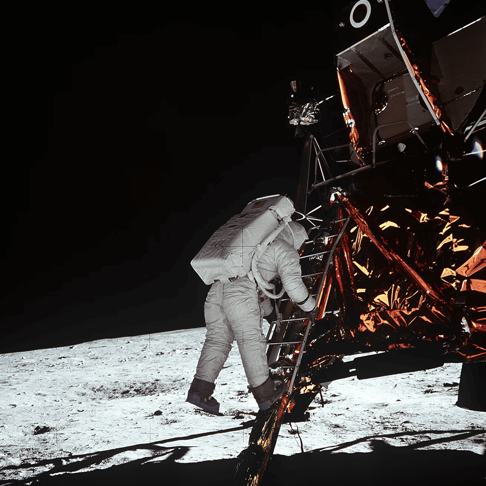 The first landing on the Moon!!! Armstrong & Aldrin spent 21 hours and 36 minutes on the surface of the Moon and left their ship to walk on the surface for 2 and a half hours