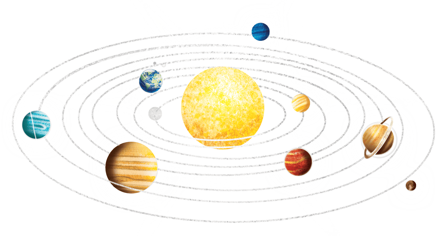 Venus is the second planet from the Sun and the sixth biggest in our solar system — and the hottest of them all! Wrapped in thick, swirling clouds, it has a rocky, empty surface under a dim, yellow sky.