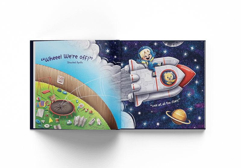 When Skyler and his Astrobear best friend Apollo blast off to the Moon, the last thing they expect is to meet a real live alien! With a magic backpack and clues that show up on the soles of his feet, Pete the alien quickly brings Skyler and Apollo on the space adventure of a lifetime.